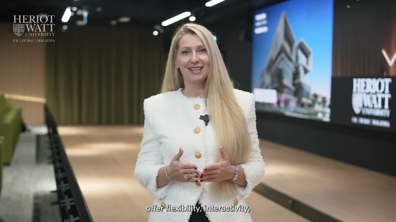The futuristic Dubai campus is designed to offer interactive and collaborative learning experiences with innovative classroom styles equipped with modern technology and equipment to foster group work and engagement.