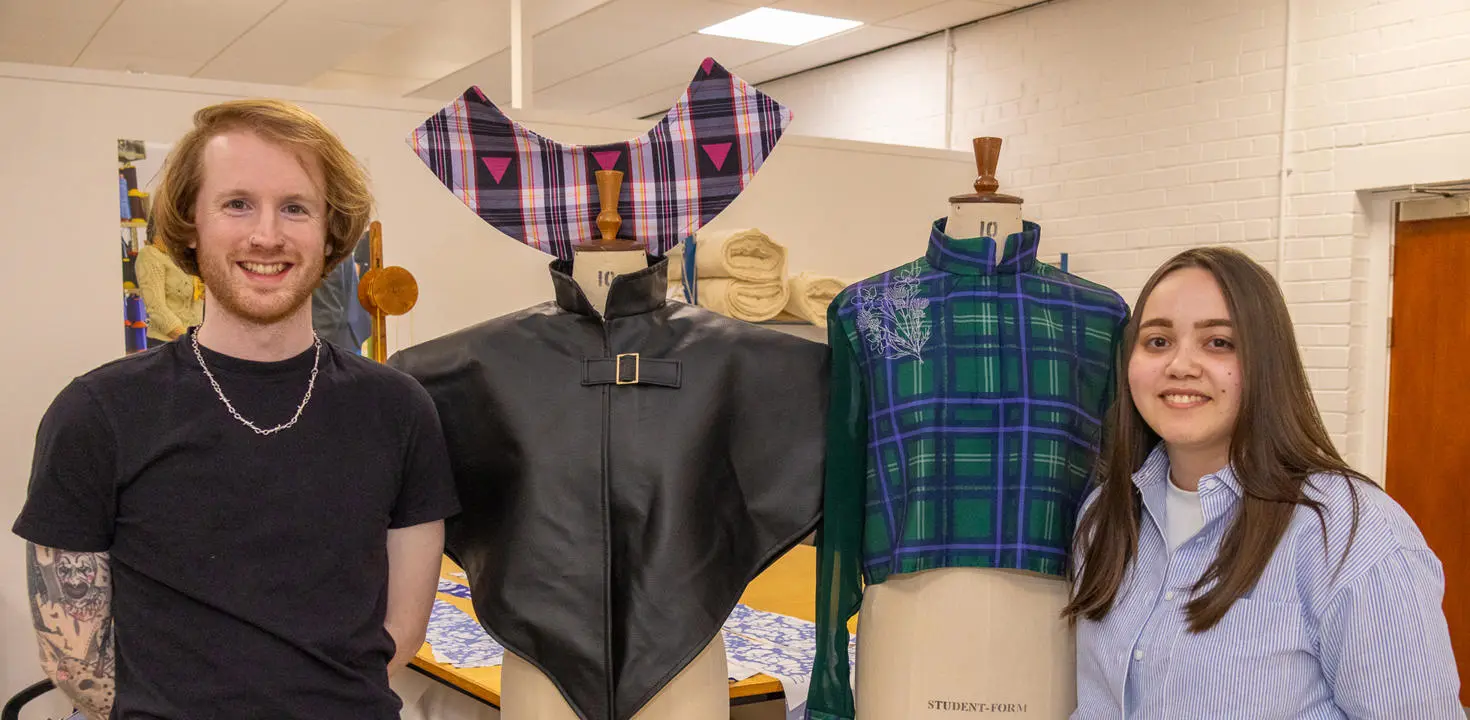 Fourth year students Craig Taylor and Kayleigh Wyllie, who are both completing their Bachelor of Arts (Honours) degree in Fashion, have both designed tartans as part of their final year ‘Honours Collection’ and are each making eight garments to showcase in the Degree Show.